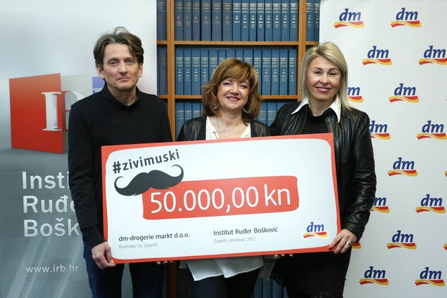 Institutu Ruđer Bošković dm je 20. prosinca donirao 50.000 kuna za istraživanje novih načina liječenja i dijagnosticiranja raka prostate. Donaciju su podržali i fanovi dm-a na Facebooku i Instagramu s više od 29.000 komentara i postova s humanitarnim hashtagom #zivimuski u sklopu kampanje posvećene muškom zdravlju.